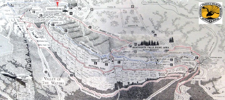 Sachant cela, c’est encore plus impressionnant vu que la hauteur des falaises pourrait vous effrayer. Depuis lors, en 2002, le sentier a été rénové pour faciliter l’accès aux visiteurs; les marches des escaliers ont été au centre de la rénovation car il y en a beaucoup. Il vous faudra entre 3h et 3.5h pour compléter le circuit de 4.8km, compte tenu que çà descend 210m puis remonte 210m (j’ai dit qu’il y avait beaucoup de marches!). Vous devez donc avoir un niveau de fitness raisonnable pour entreprendre cette randonnée. Voici une carte du chemin National Pass: