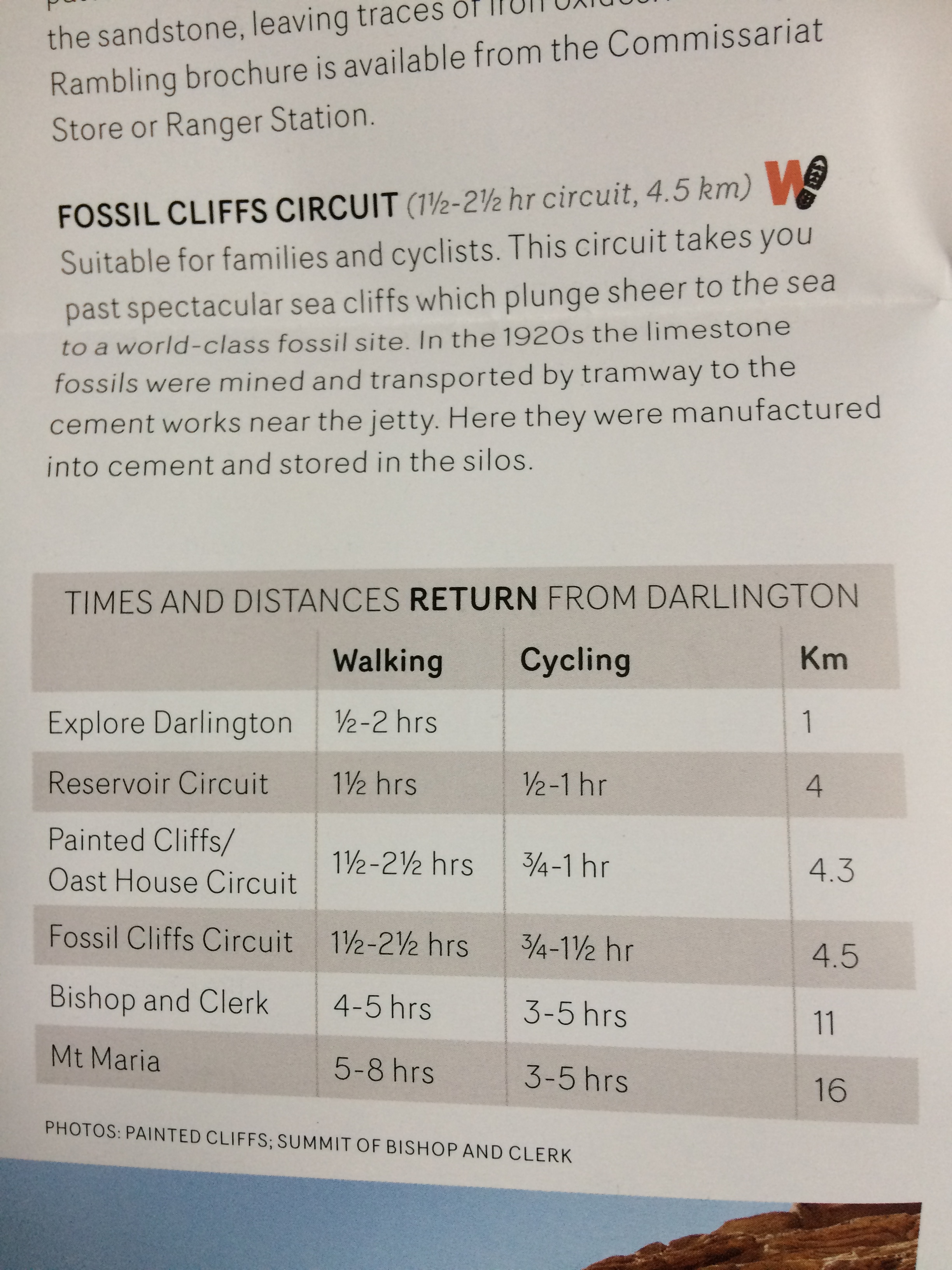 Vue qu’on est déjà en plein milieu d’après-midi, il faut trouver une balade d’1 heure ou 2, donc Fossil Cliffs Walk est parfait! Une petite marche dans la vallée en passant par les anciens batiments de Darlington et les ruines appelées Twelve Apostles, nous fait découvrir une superbe vue sur l’océan et les îles voisines depuis le haut des falaises de calcaire. En marchant un peu plus on arrive à une ancienne carrière de calcaire (il y avait une fabrique de ciment à l’époque). Notre premier wombat fait ici son apparition! Au Nord, en fin d’après-midi, nous voilà entourés par des centaines de wallabies! Un peu plus loin il y a un ancien cimetière où l’on peut lire les inscriptions sur quelques tombes qui nous fait revivre le passé. Puis, c’est au tour des wombats, il y en a partout et ils se laissent tous approcher et caresser! Amusement garanti!