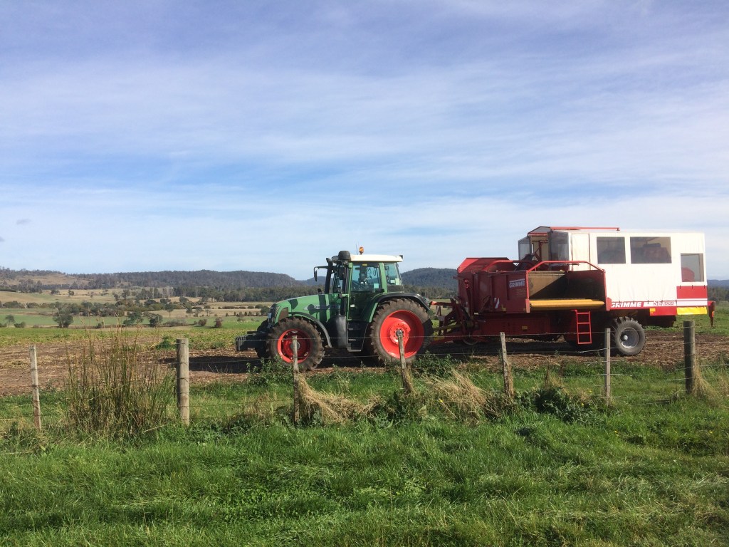 En Tasmanie, nous avions trouvé du boulot dans les cerises, dans une ferme de plans de fraises et dans une ferme de pommes de terre, ce qui était bien entendu saisonnier à chaque fois. On a dû attendre deux semaines avant de pouvoir prendre le ferry pour retourner sur le “continent” car le ferry n’a que quelques places allouées pour les véhicules de plus de 1.8m de hauteur (et la caravane faisait 1.90m de hauteur).